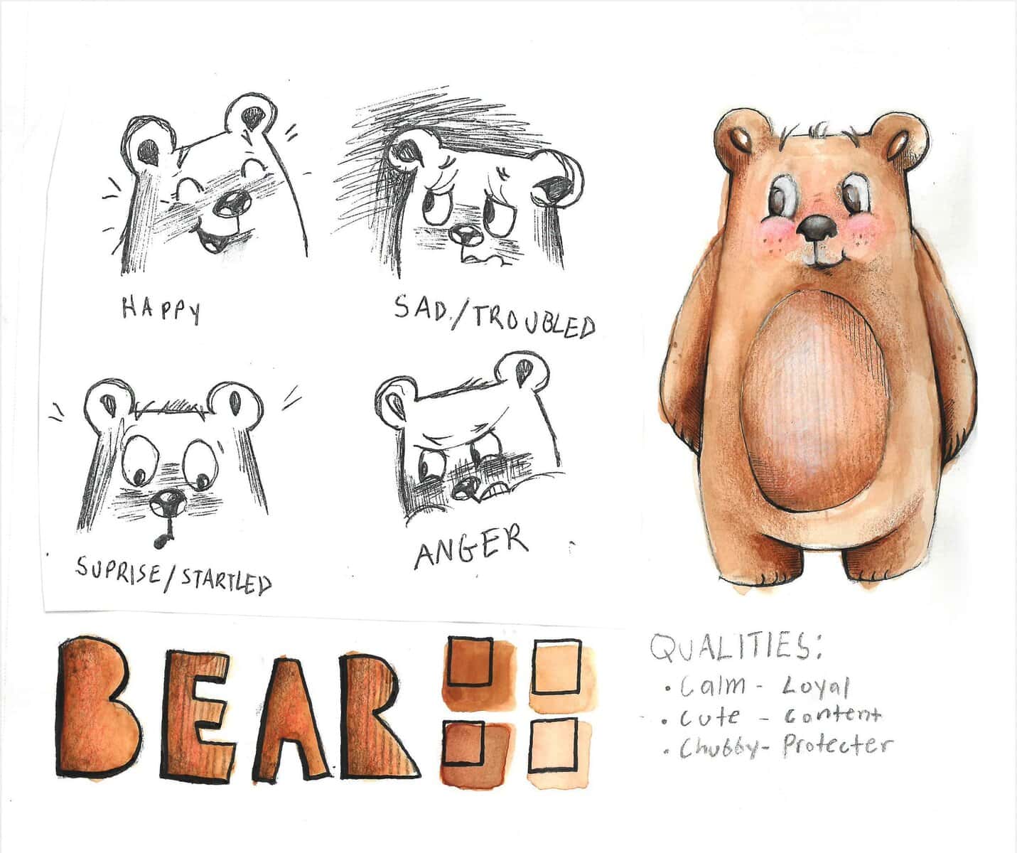 When it comes to the beginning sketches, it’s important to depict each character’s unique personalities. When first sketching, I carefully consider facial expressions, features, the character’s build, color and texture. All of this can be used to help communicate the character’s personality to the reader.