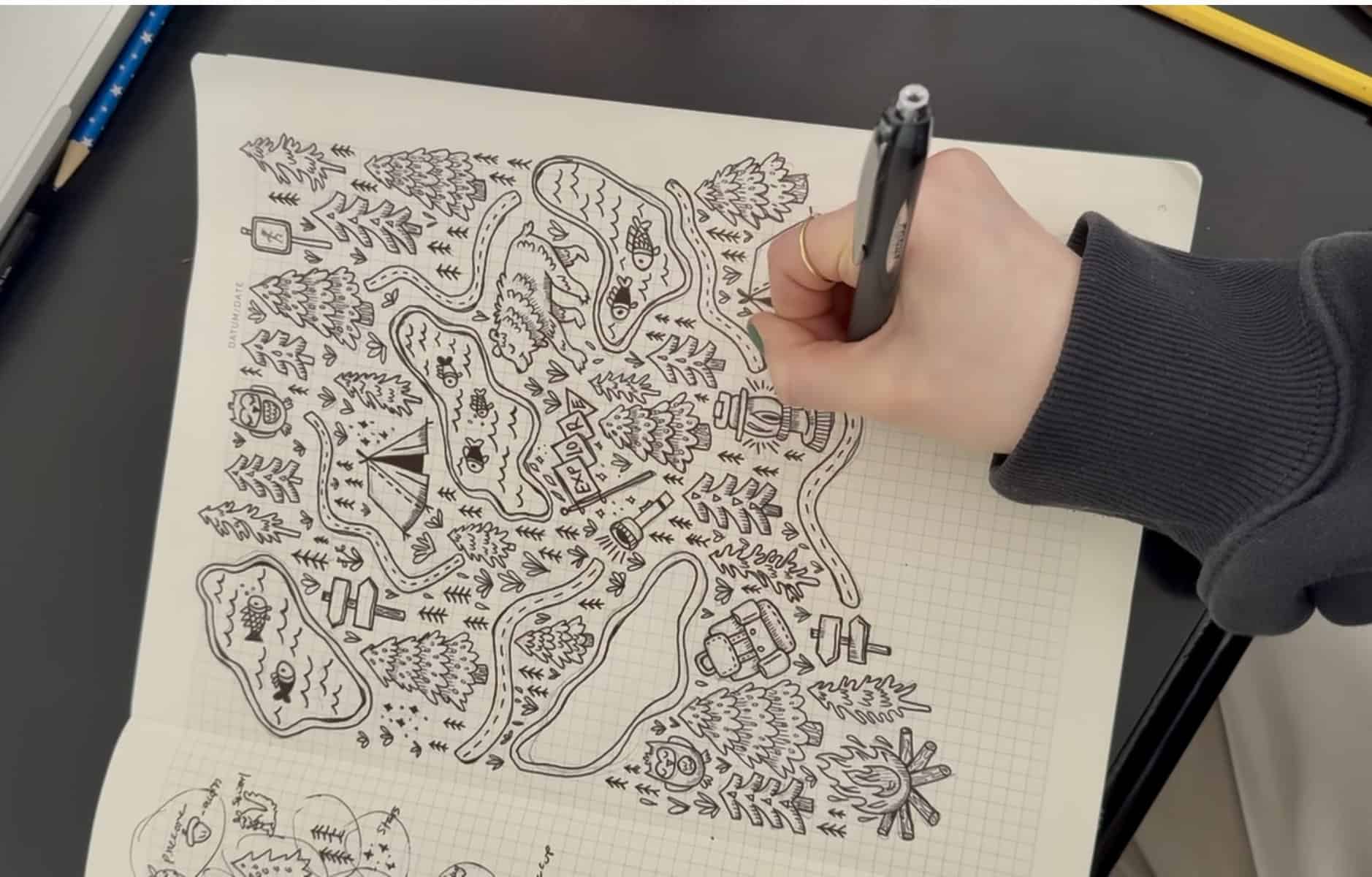 One of our favorite details in the redesign is a custom, hand-drawn pattern filled with campy, trail-inspired elements. Think hiking paths, forest trees, and tiny trail markers—all tucked into the background of our site. (See if you can spot it on our Home Page and our About Us page!)